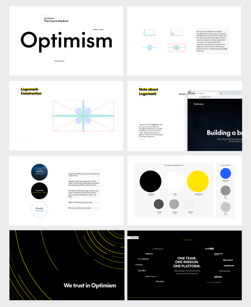 My role in this ambitious project was to visually translate this ethos of optimism, creating a brand identity that embodied the mission of fostering a brighter, more hopeful web. The result was a branding that conveyed a sense of boundless space and possibility, mirroring the aspirational vision of 'Optimism'.